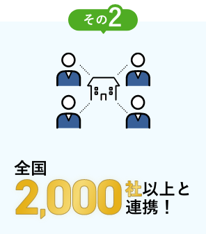 全国の不動産会社2,000社以上と提携しているため、地域に精通した中小企業から大手間で、あなたの物件や状況に最適な不動産会社をご紹介することができます。