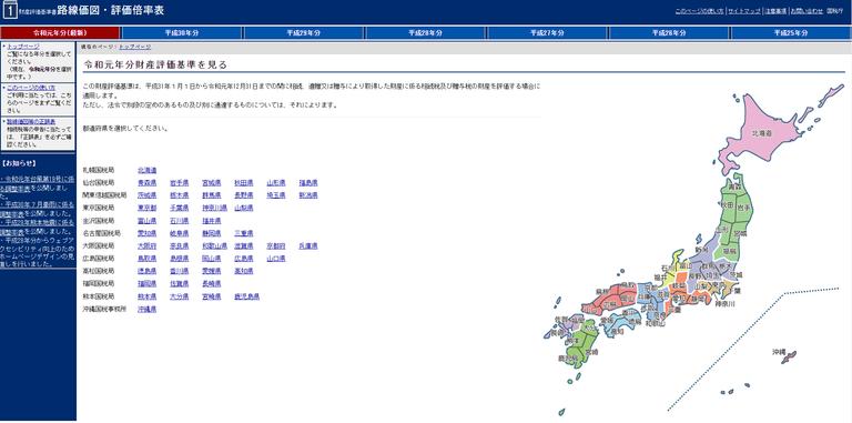表示されている日本地図から都道府県を選択し、「路線価」をクリックすると市区町村を選ぶことが出来るので、画面の指示に従いましょう。