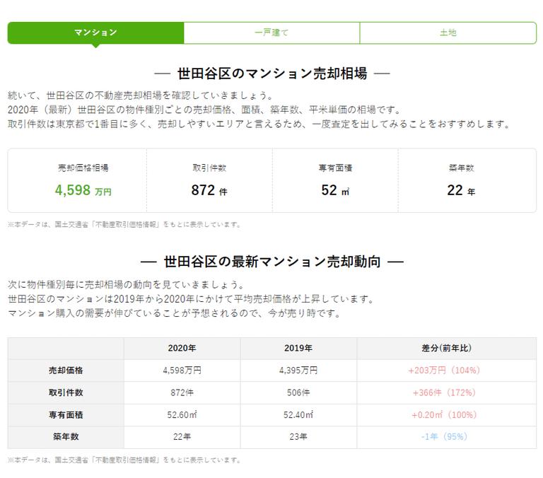 (すまいステップの売却相場情報の例)