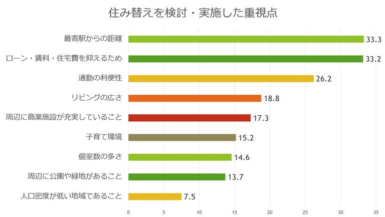 以下は、住み替えを検討・実施した人の住み替え理由を表したグラフです。