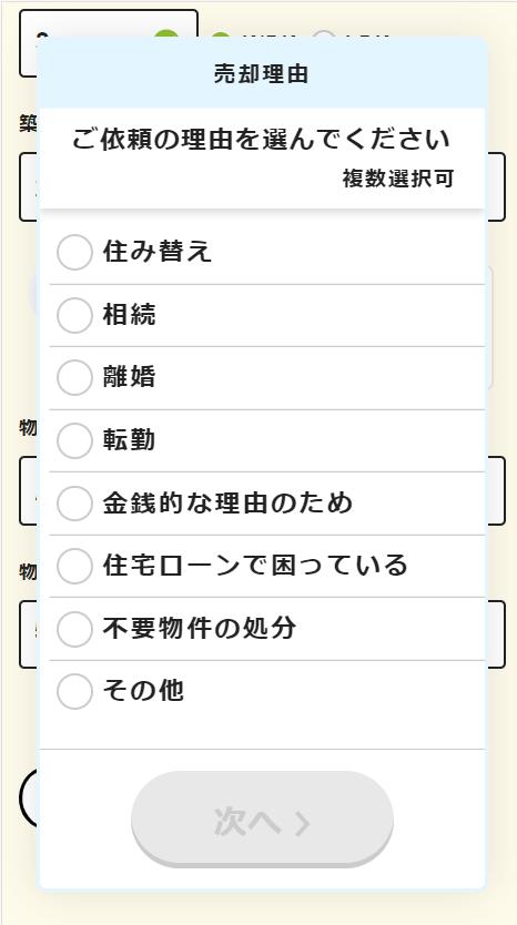 - 物件の情報や査定する理由などを選択して入力完了
