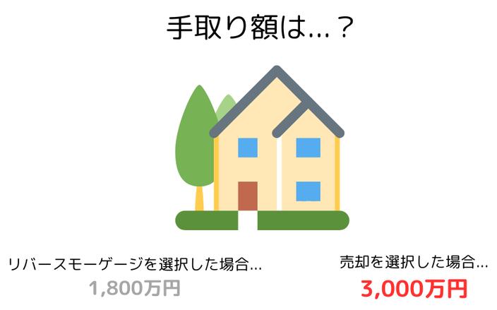 例えば、3,000万円の価値がある自宅だった場合、リバースモーゲージを選択した場合の手取り額は最大でも1,800万円になり、1,200万円も差ができてしまいます。
